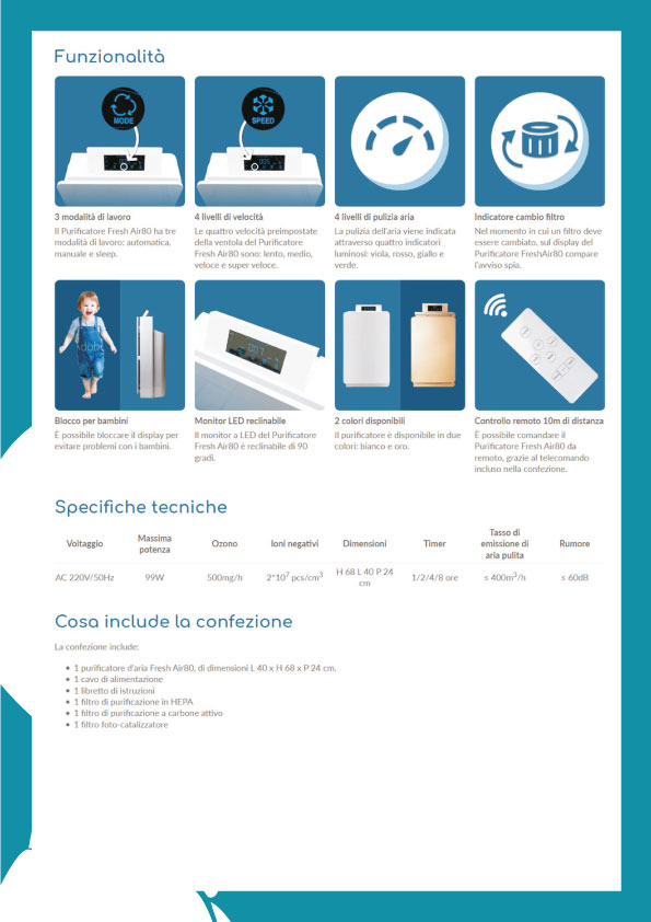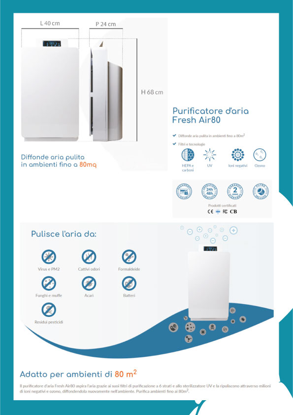 Diffonde aria pulita in ambienti fino ad 80 mq